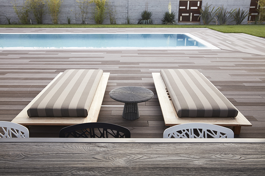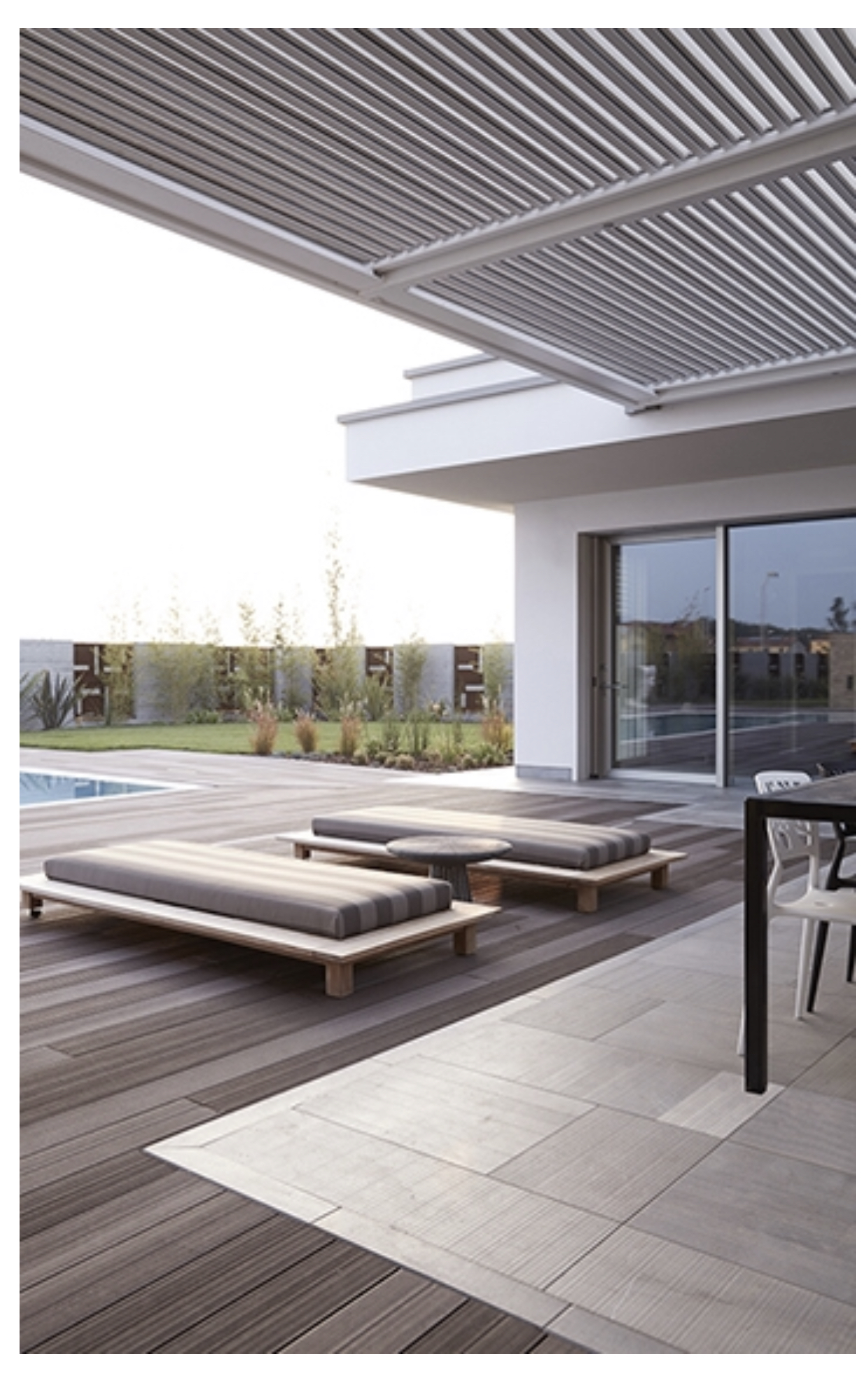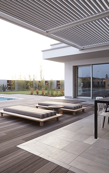 Art e Parquet House ha fornito e posato in opera questo Composito Greenwood a 2 colori alternati, in finitura ebano e wenge’ per l’intera superficie di questo magnifico solarium.